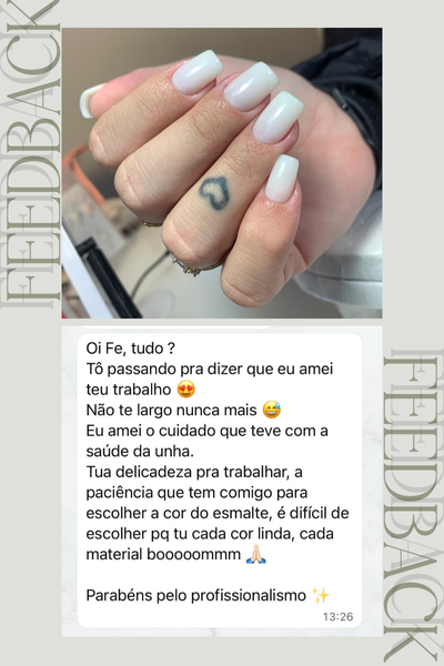 Sou especialista em esmaltação em gel e apaixonada por unhas naturais. Ao longo da minha jornada como manicure, descobri que o verdadeiro diferencial não está apenas em fazer unhas bonitas, mas em entregar excelência em cada detalhe, conquistando a confiança e a fidelidade das clientes.