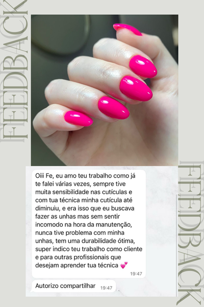 Foram anos de prática, estudo e dedicação para aperfeiçoar as técnicas de esmaltação em gel e cuticulagem de alto padrão, aplicando sempre os métodos mais eficientes e reconhecidos do mercado. Hoje, minhas clientes valorizam meu trabalho justamente por esse cuidado, e é isso que quero compartilhar com você.